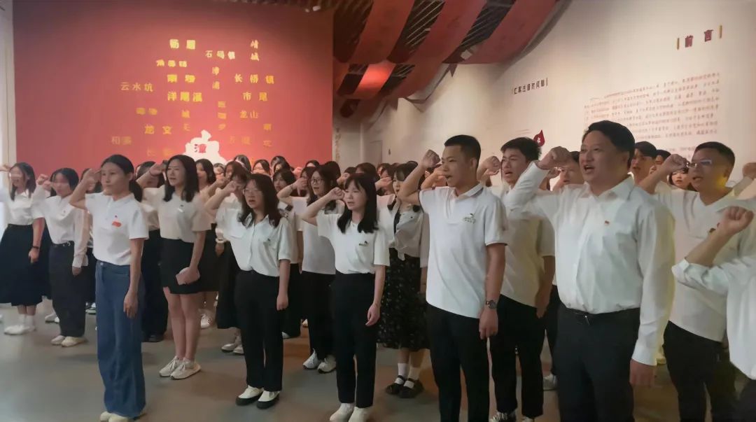 入馆后,全体党员在庄严的党旗下重温入党誓词。紧接着,在讲解员的带领下,党员们参观了“红色回响——中国工农红军东路军东征漳州红色标语展”,通过观看红军在漳期间沿途书写的标语及历史文物,切实感受红军为革命奋斗的决心和使命,领悟红军进漳的伟大胜利和历史荣光,感怀中国共产党团结带领人民同心戮力、共克时艰、走向民族独立和人民解放的不易。