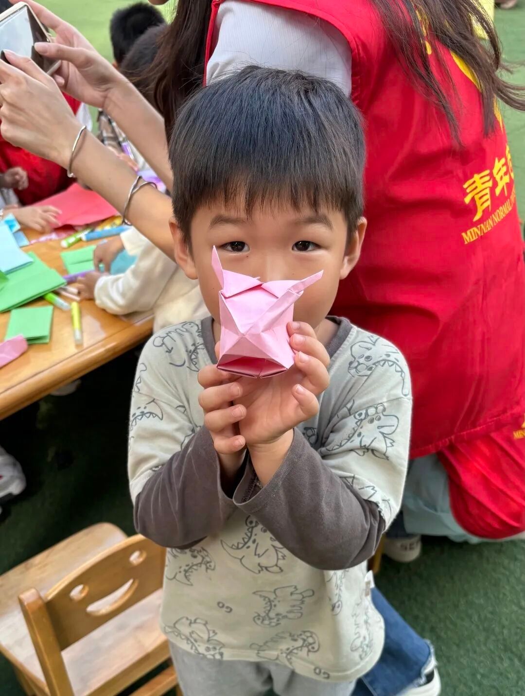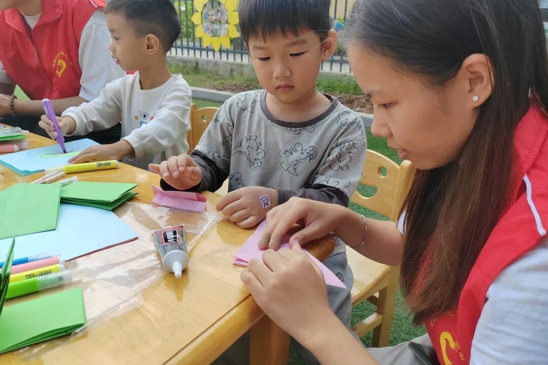 小手折一折、胶水粘一粘。在志愿者的引导下,孩子们在手工环节中大展身手,制作出了一个个精美的小钱包。志愿者还鼓励孩子们发挥奇思妙想,为小钱包画上可爱的图案。这些充满童趣的小钱包,不仅是他们收纳“财富”的天地,更包含着他们对金钱管理的初步认知。