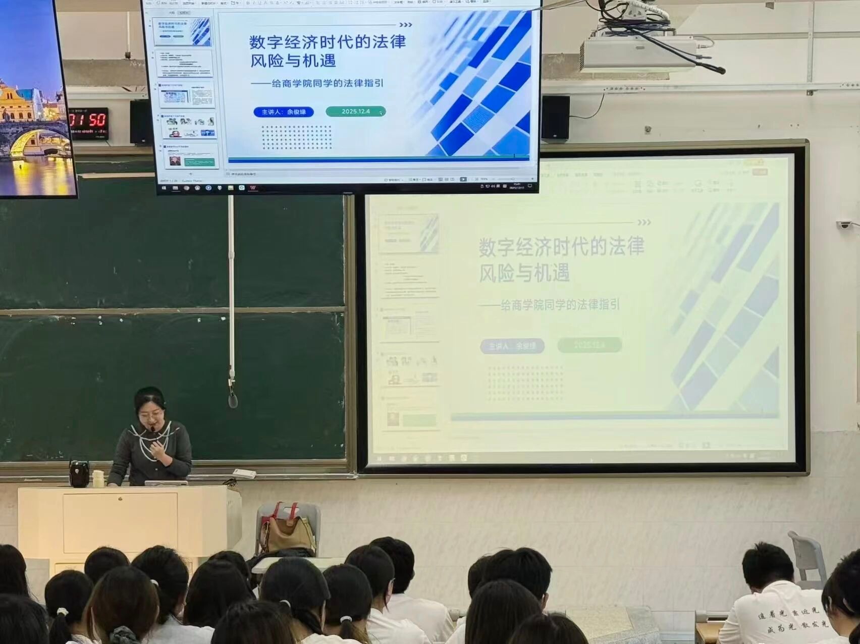 12月11日,马克思主义学院副教授余俊缘开展“数字经济时代的法律风险与机遇”主题课程。她将数字经济发展趋势与相关法律知识相结合,分析青年在数字经济浪潮中面临的法律风险与发展机遇,有效提升了学员们的法律意识。