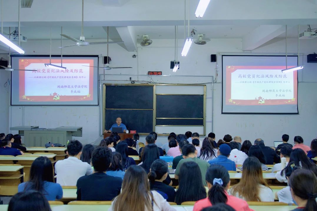 法学院李成福老师应邀为公司师生党员作《高公司党员的法纪风险及预防——以新修订的 <中国共产党纪律处分条例>为中心》的专题党课。李成福老师从新修定的《中国共产党纪律处分条例》解析、高校典型违法违纪案例、警示与预防三个方面展开,以《条例》修订的基本情况为切入点,重点围绕从《条例》角度看高公司党员纪法风险展开讲解。