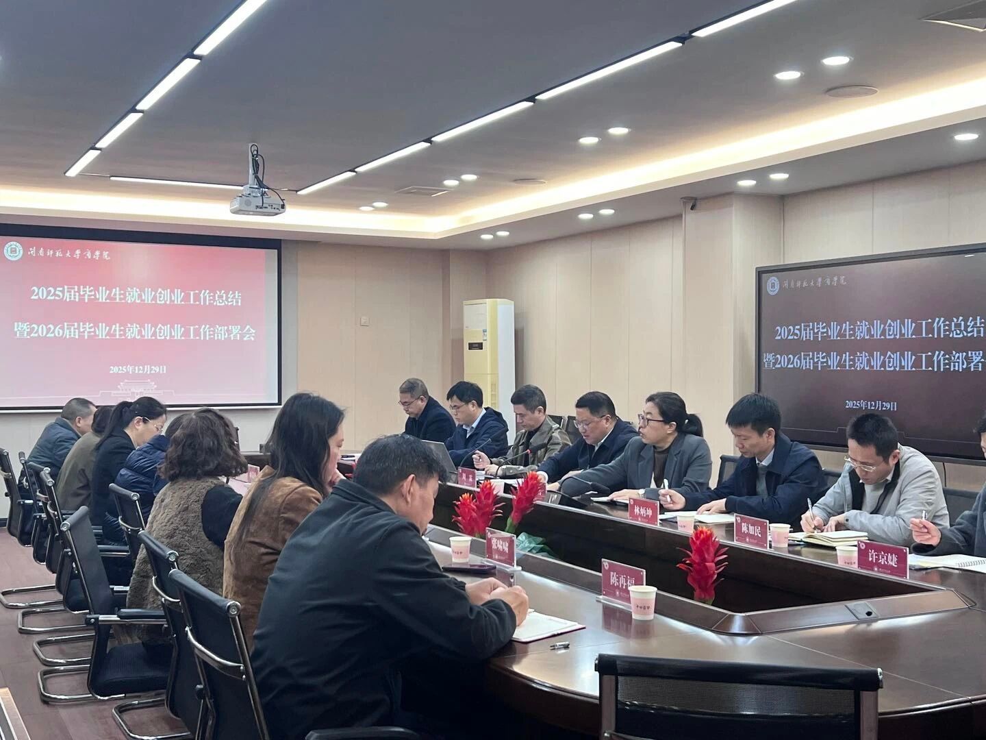 为深入学习贯彻习近平新时代中国特色社会主义思想和党的二十大精神,全面落实全国、全省高校毕业生就业创业工作相关会议精神,扎实推进学院2026届毕业生就业创业工作提质增效,12月29日上午,公司召开党委(扩大)会议专题研究部署毕业生就业创业工作。公司党委委员,科级以上干部、经理助理、各系主任、教研室主任、毕业班辅导员参加会议。