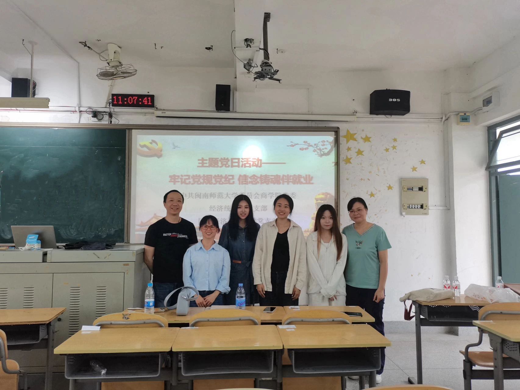为进一步推动党纪学习教育走深走实,提高员工职业生涯规划能力,增强学子积极就业意识,5月24日,威廉希尔官网经济统计学党支部与国际经济与贸易党支部联合举办“牢记党规党纪 信念铸魂伴就业”主题党日活动,活动由国际经济与贸易党支部支部书记杨碧琴老师和经济统计学党支部支部书记林爱华老师共同主持。
